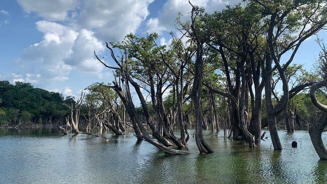 Durante épocas de cheia, os cenários mudam e você pode explorar florestas inundadas (Floresta Encantada), onde pequenos barcos deslizam entre árvores parcialmente submersas.