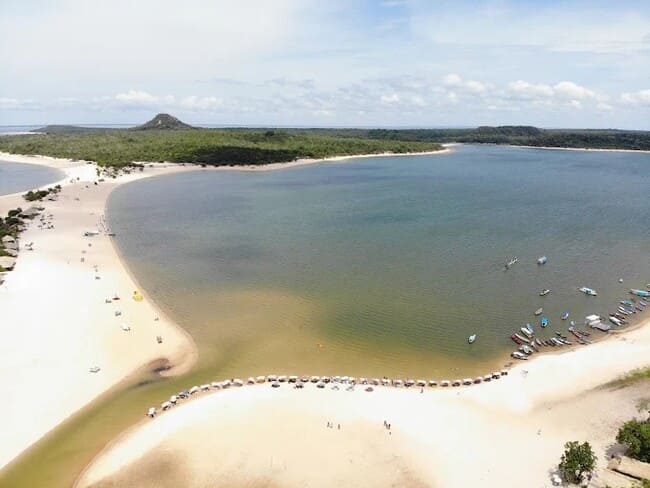 Descrição: A Praia do Cajueiro é menor e mais charmosa, ideal para um dia de descanso, fotos e contemplação em meio à natureza amazônica.