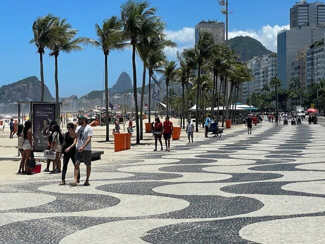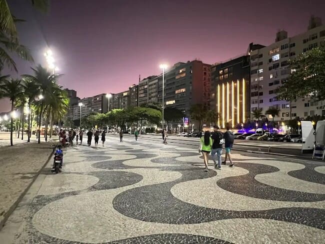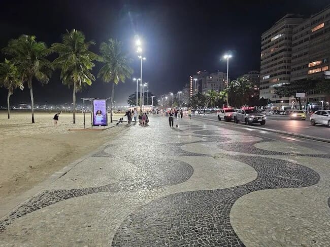 Com seu famoso mosaico de pedras portuguesas em padrão ondulado, o calçadão é mais do que um cartão-postal — é uma atração por si só. Ao longo de quase 4 km, o cenário mescla o azul do mar com o vai e vem da cidade, oferecendo uma experiência visual e sensorial única.