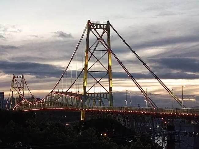 A Ponte Hercílio Luz é o símbolo mais famoso de Florianópolis e um dos cartões‑postais mais fotografados da cidade.