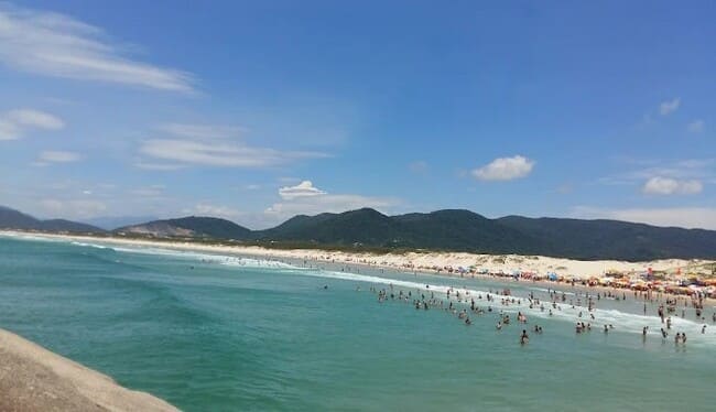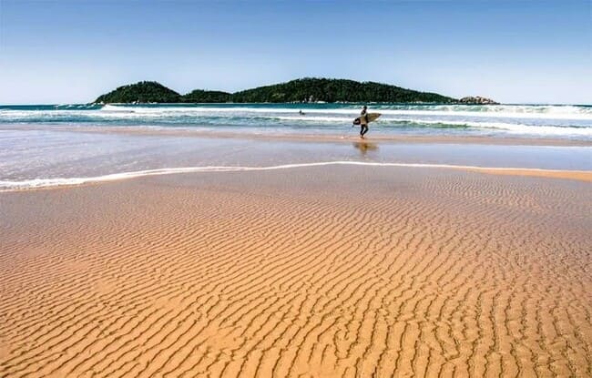 A Praia da Joaquina é outro destaque da ilha, famosa internacionalmente por suas ondas potentes e por sediar competições de surf ao longo do ano.