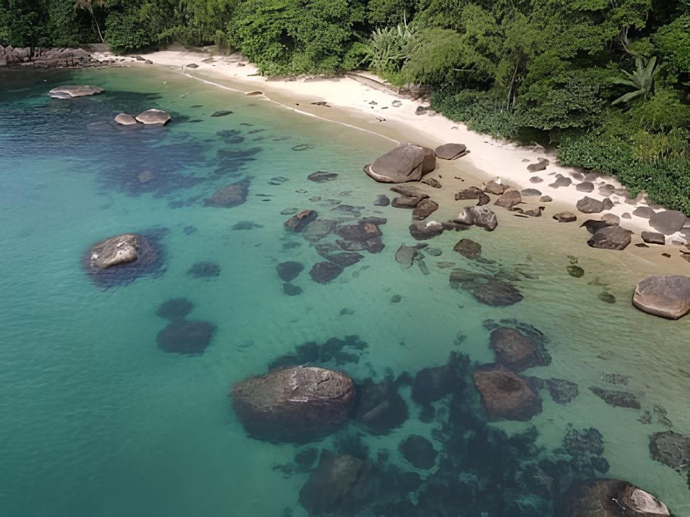 Um refúgio de água cristalina e trilhas arqueológicas, com acesso por barco.
